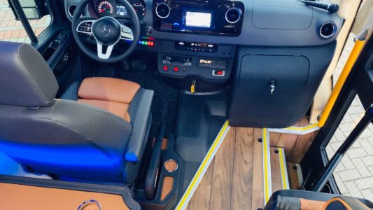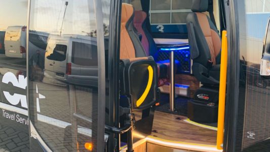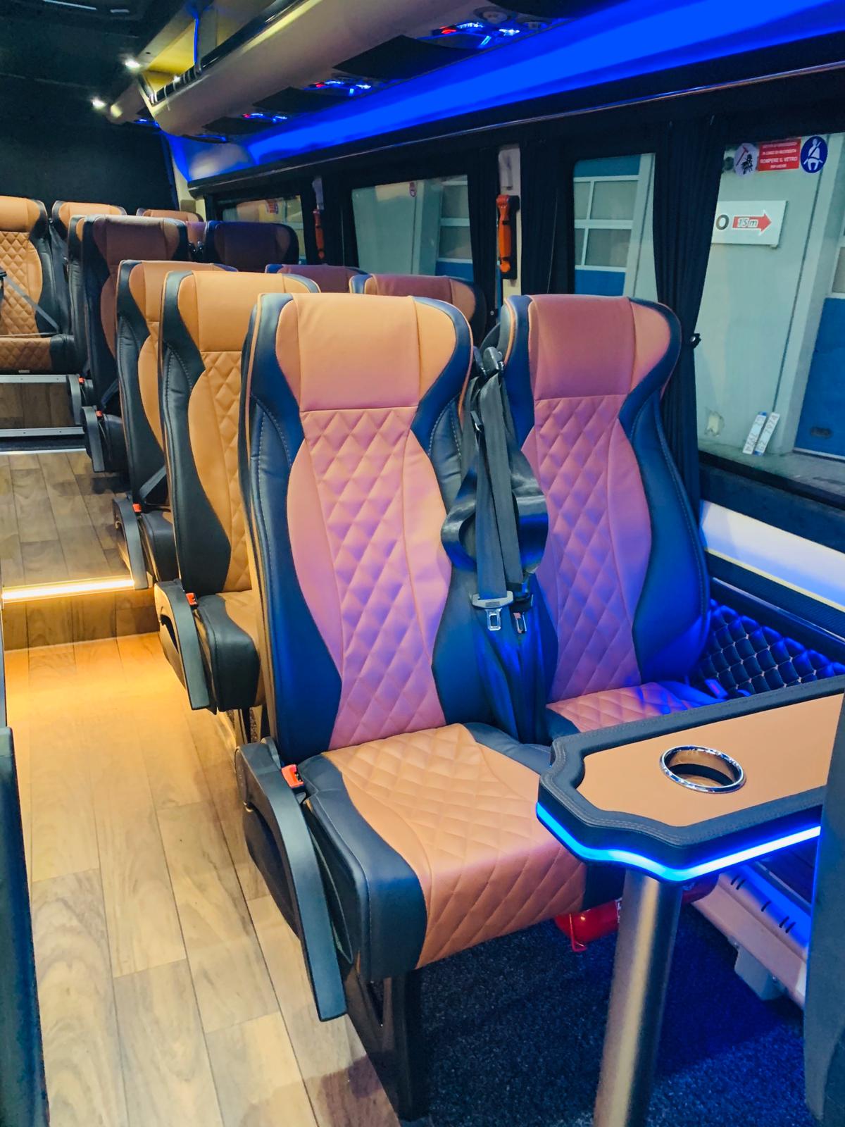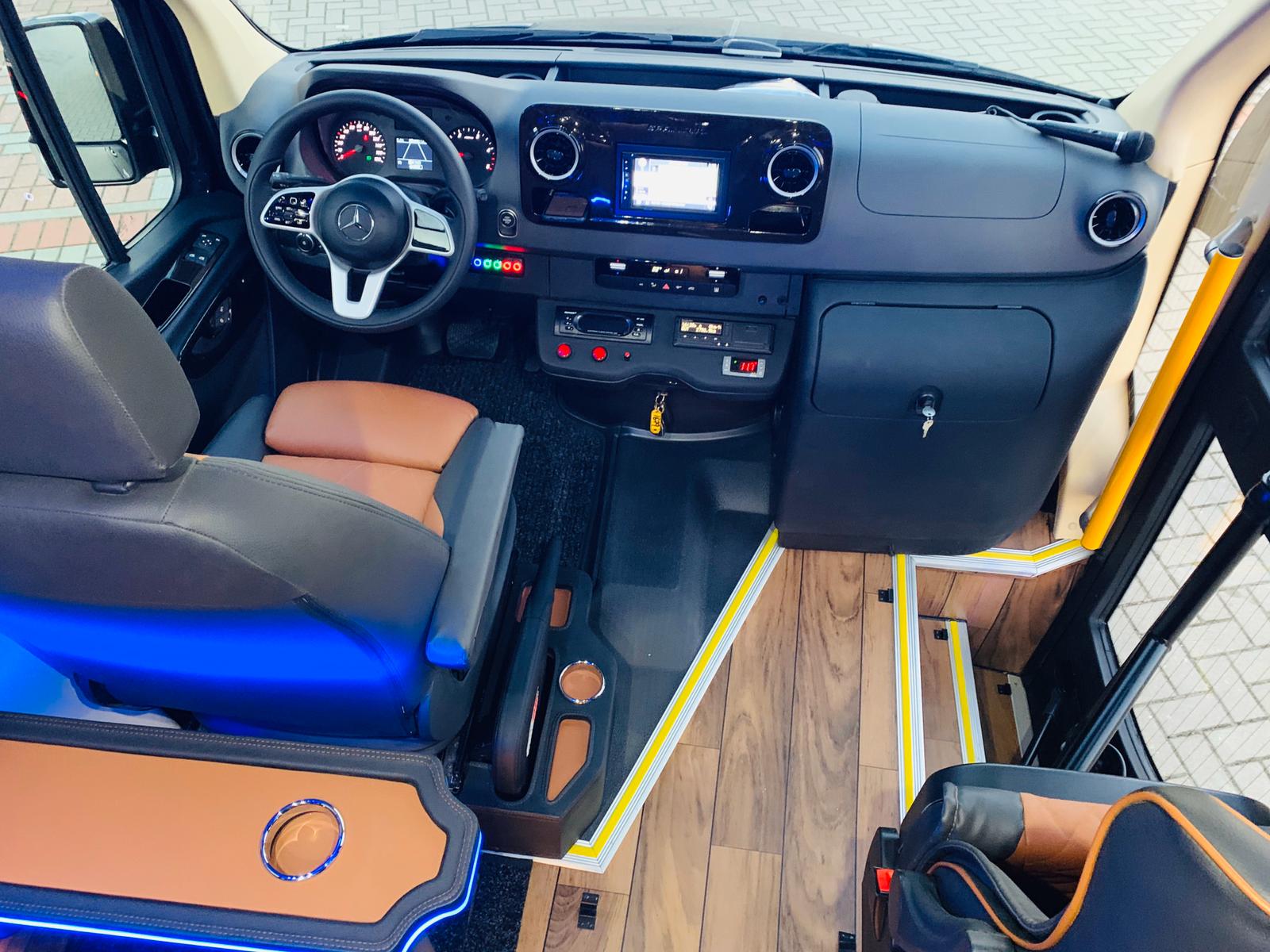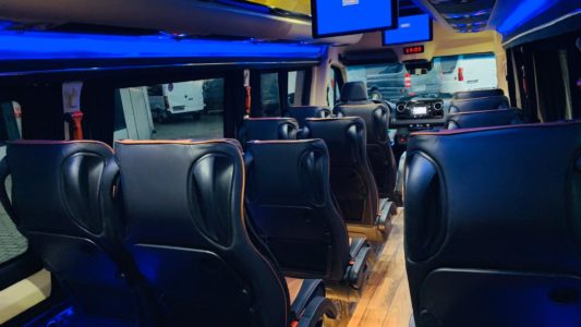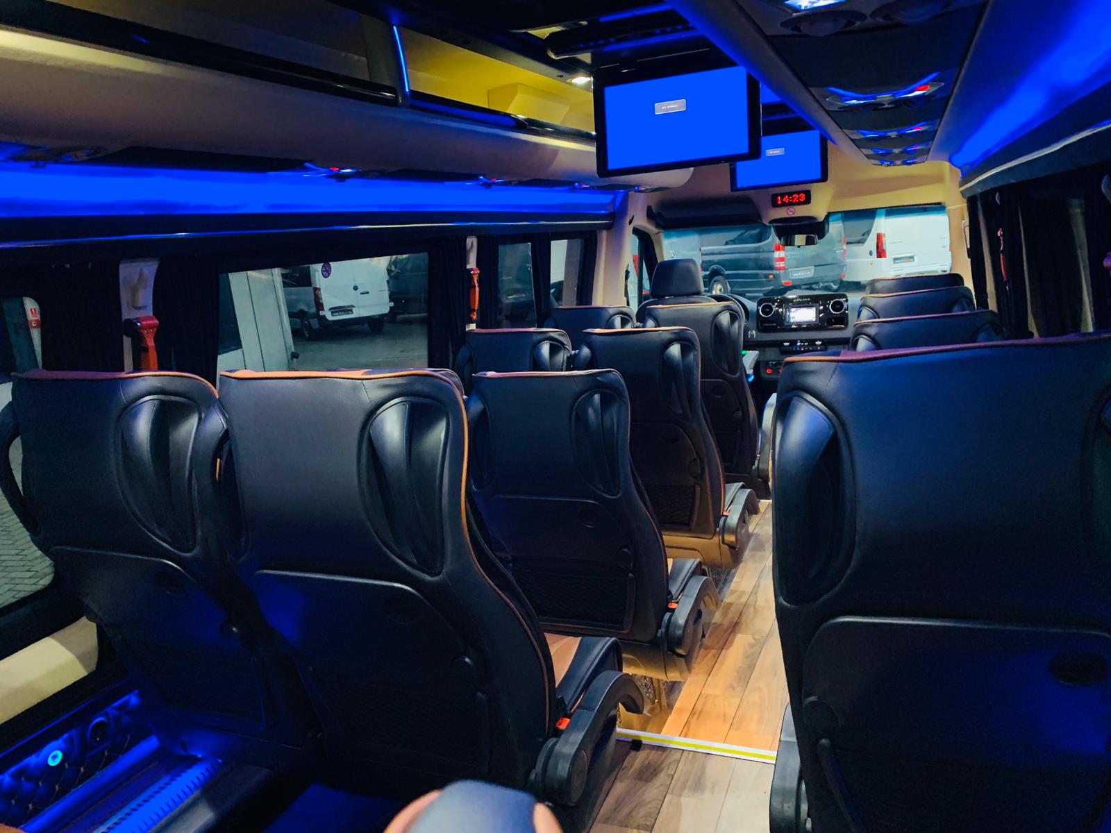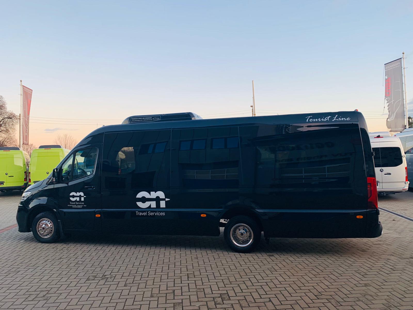 Il minibus su base Mercedes Sprinter rappresenta il fiore all’occhiello della flotta di On-Travel Services. Materiali raffinati e tecnologie avanzate per consentire a comitive mediamente numerose (fino a 20 persone) di viaggiare nel massimo comfort.